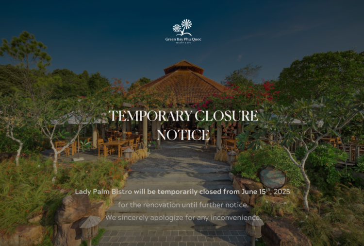 Please be informed that Lady Palm Bistro will be temporarily closed from June 15, 2025, as it is undergoing full renovations.