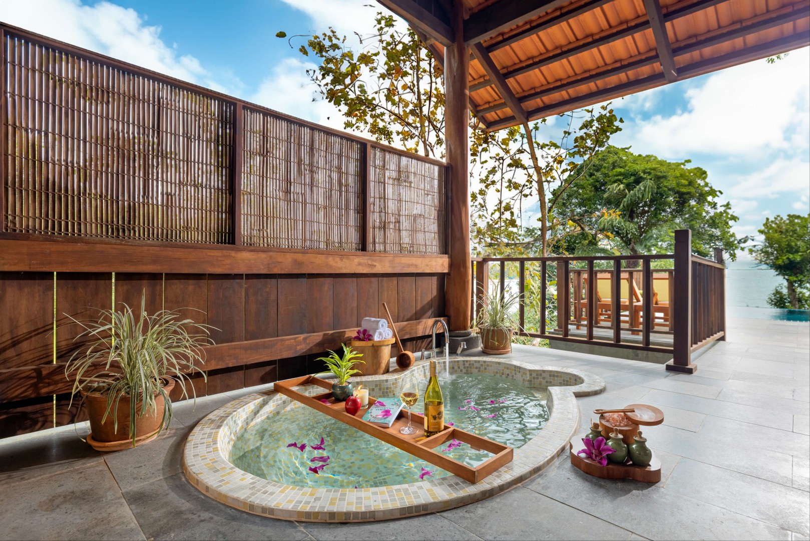Đắm mình trong sự thư giãn dưới ánh nắng ấm áp và tận hưởng khung cảnh hùng vĩ từ hồ bơi vô cực riêng tư của Quý khách. Với tầm nhìn toàn cảnh ra đại dương từ trên đỉnh đồi, mọi khoảnh khắc đều hứa hẹn sẽ là một trải nghiệm đầy cảm xúc giữa không gian rừng nhiệt đới hoang sơ.