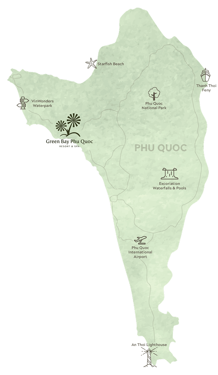 Embark on an incredible adventure to our paradise at Green Bay Phu Quoc Resort, perfectly situated just a 45-minute drive from Phu Quoc International Airport. Alternatively, for a scenic journey by sea, opt for a leisurely boat ride from the mainland to Phu Quoc Island. Immerse yourself in the beauty of Vietnam's coastal landscapes as you cruise towards our resort, taking in stunning views of azure waters and lush greenery along the way. Upon reaching Phu Quoc Island, our transfer service will bring you straight to the doorstep of Green Bay Phu Quoc Resort, where a warm welcome awaits. For a hassle-free journey, our reservations team is always available to assist with your travel arrangements, whether you're booking a single night or an extended stay.